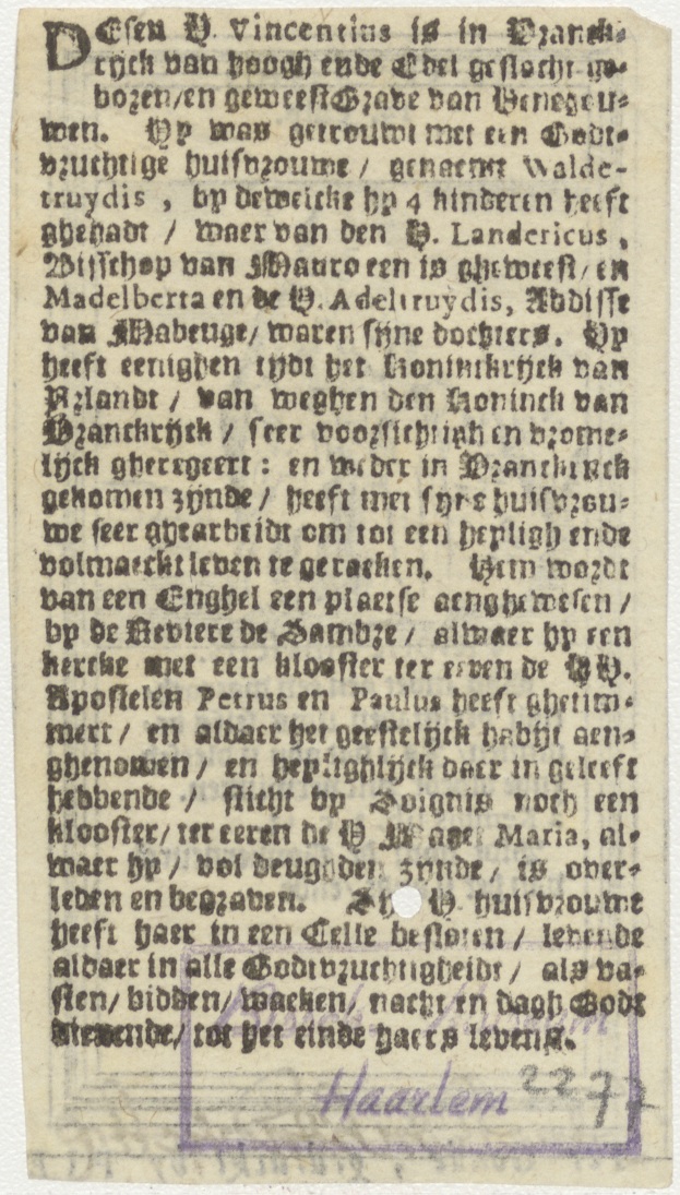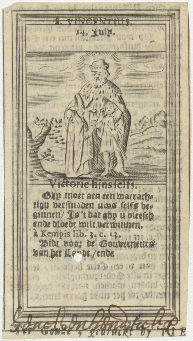 H. Vincentius, met tekst, kz. levensbeschrijving