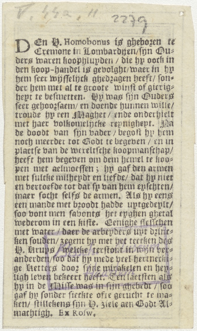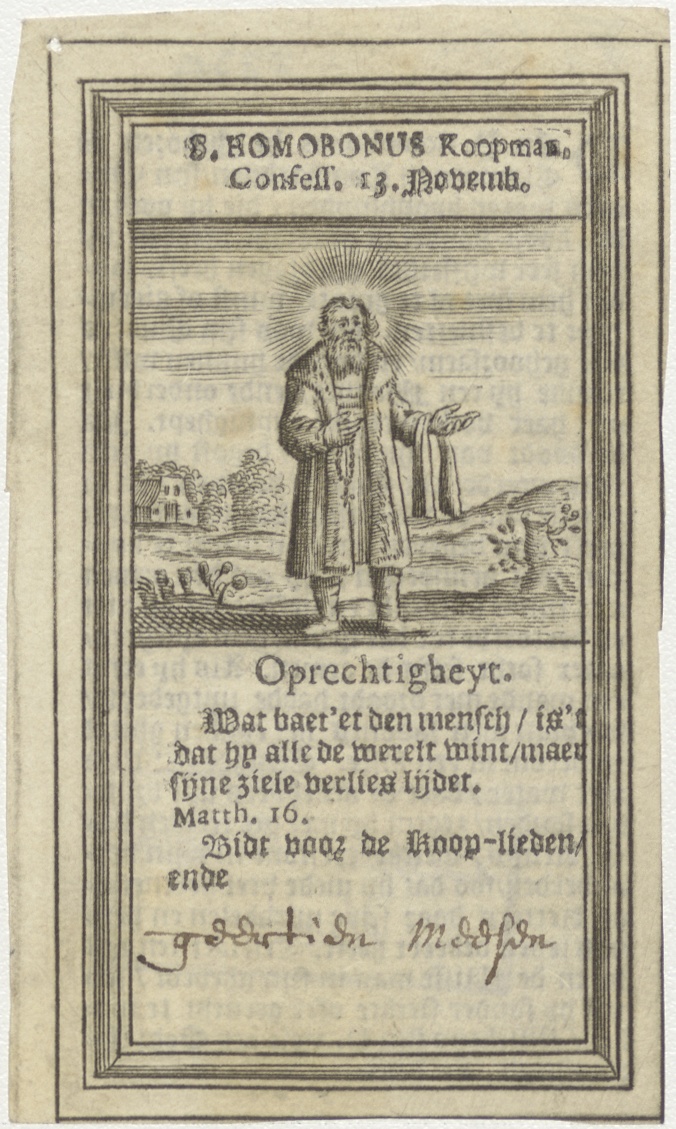 H. Homobonus, met tekst, kz. tekst levensbeschrijving;