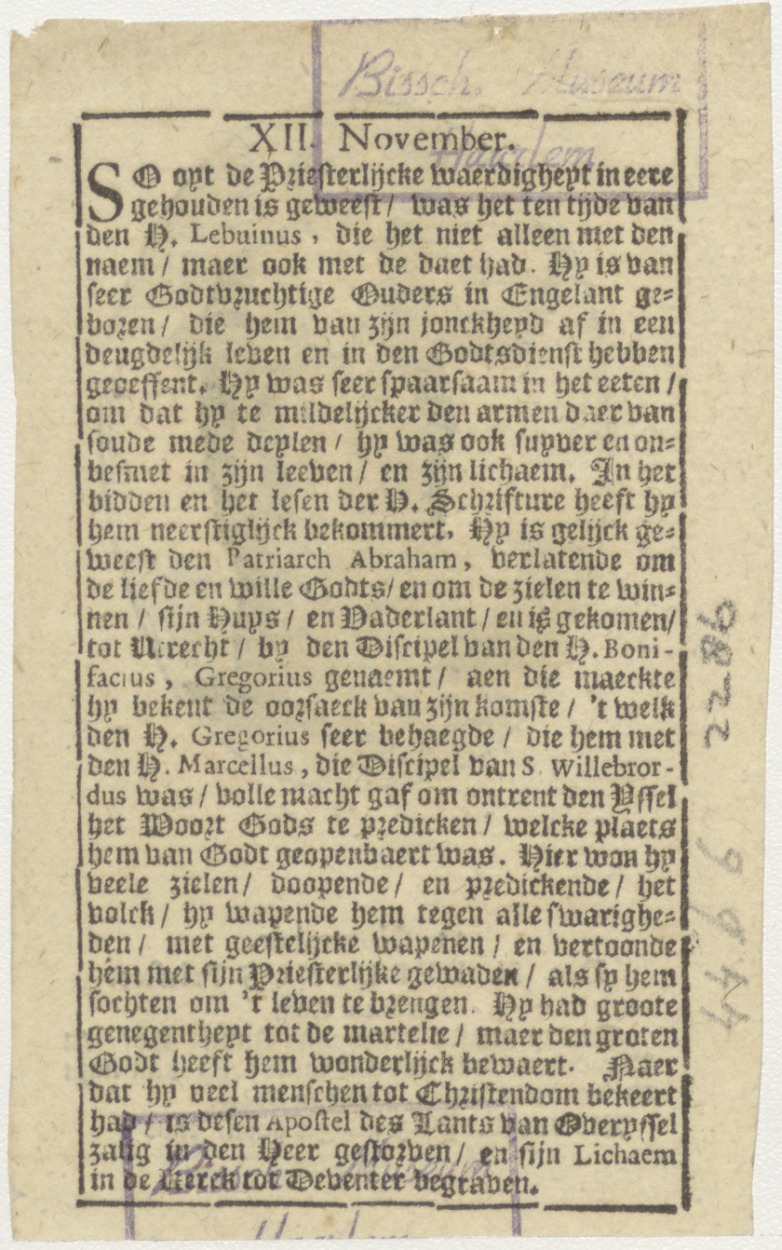 H. Lebuinus, met tekst, kz. levensbeschrijving