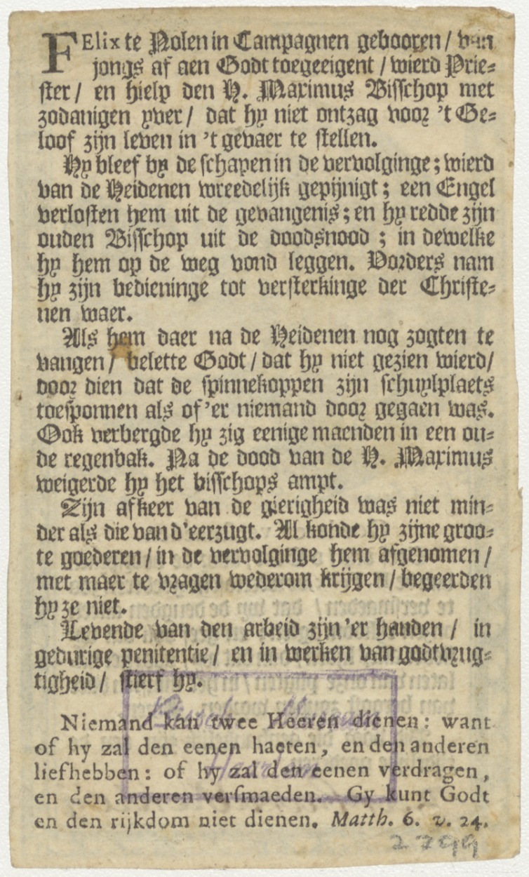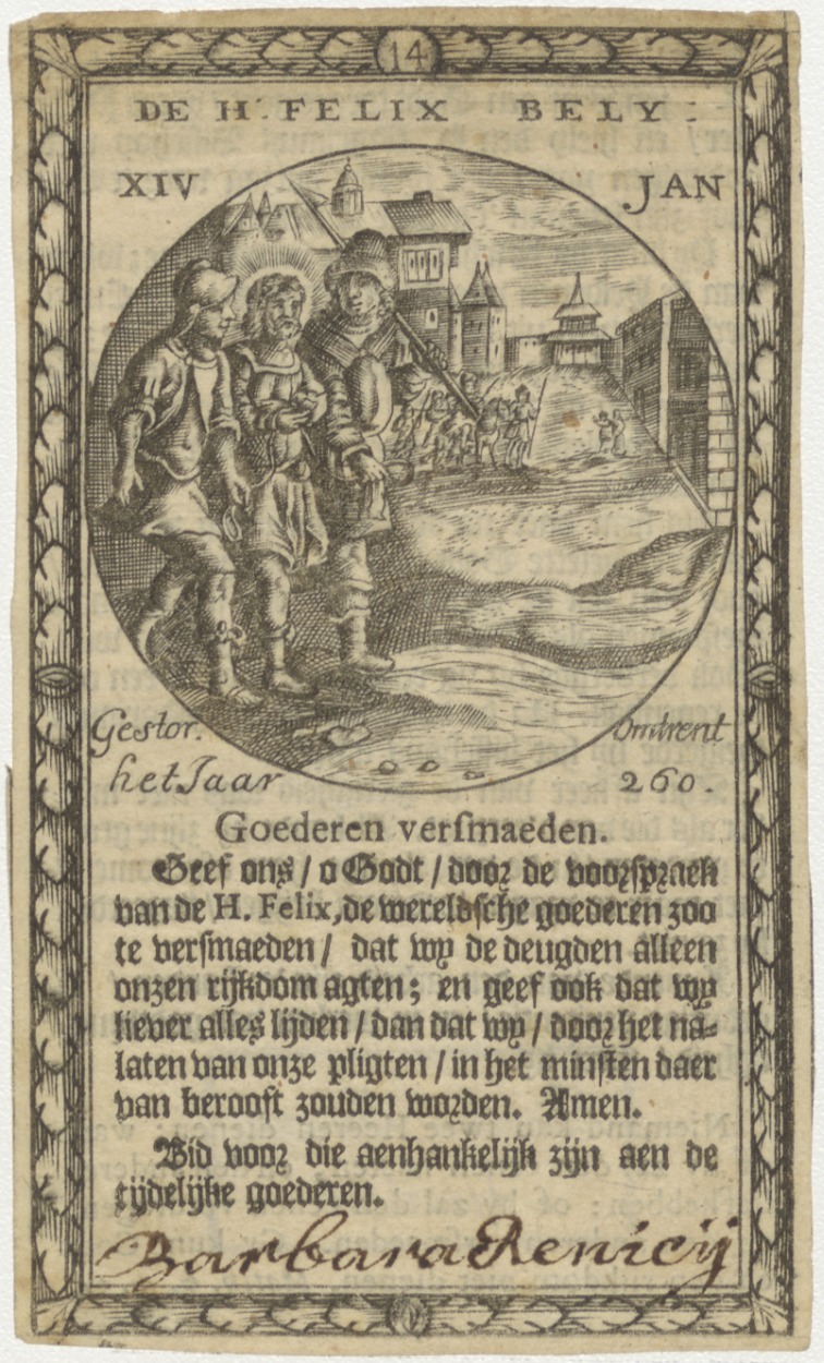 H. Felix, met tekst, kz. boekdruk tekst(?);