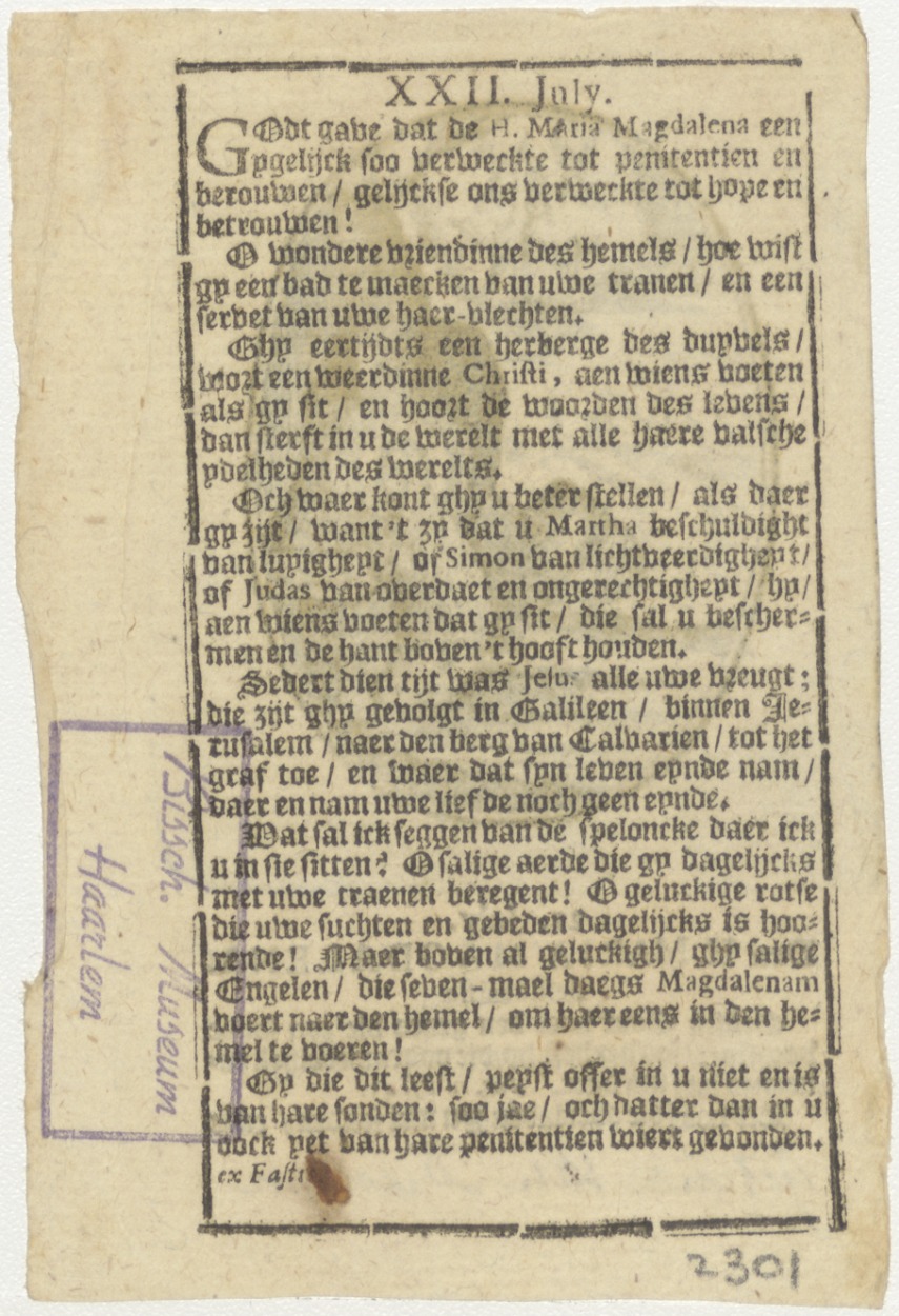 H. Maria Magdalena, met tekst, kz. levensbeschrijving