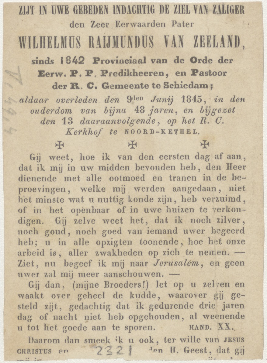 H. François Xaverius (Franciscus), kz. Religieus;Bid voor ziel Wilhelmus van Zeeland (+1842);pastoor te Schiedam;
