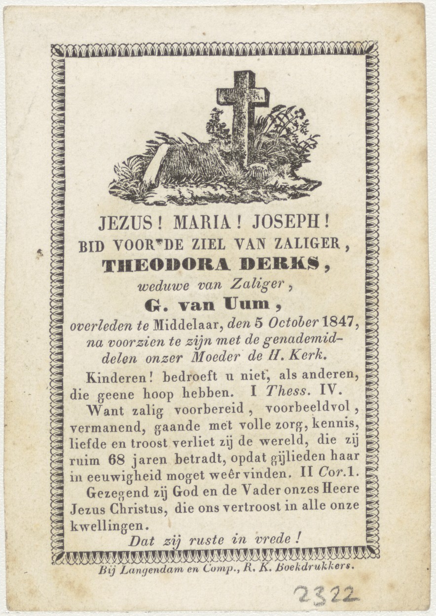 H. Stanislaus Kostka, kz. Bid voor ziel Uun-Derks (+1847);Middelaar;