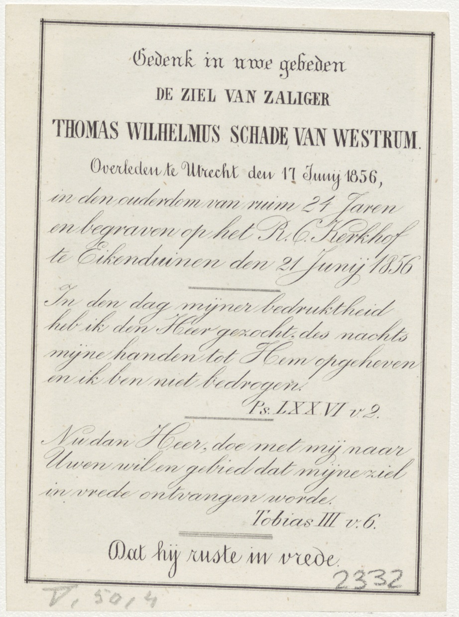 H. Kruis (Frans), kz. Bid voor ziel Schade van Westrum (+1856);Eikenduinen;