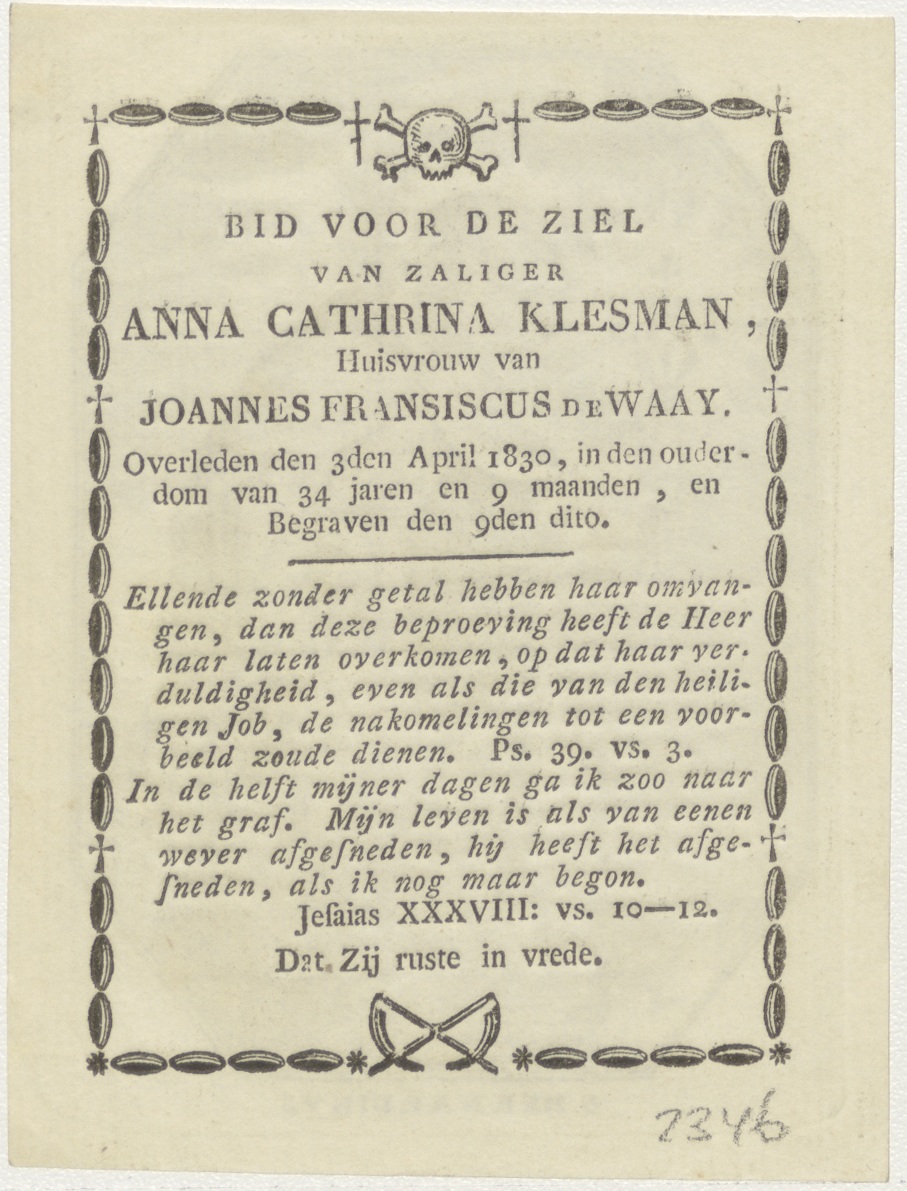 H. Bernardinus, kz. Bid voor ziel Klesman-De Waay (+1830)
