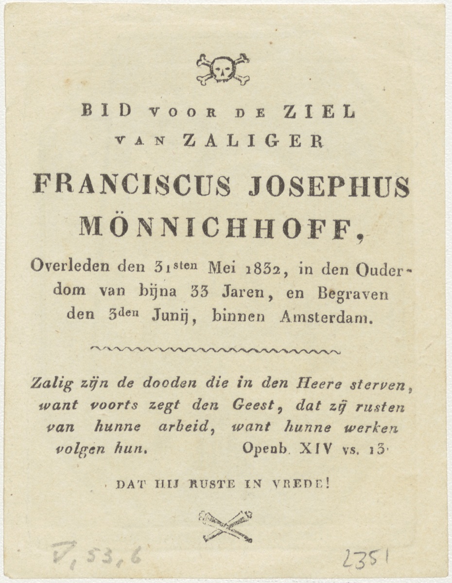 H. Maria Magdalena, kz. Bid voor ziel Mönnichhof (+1832);Amsterdam;