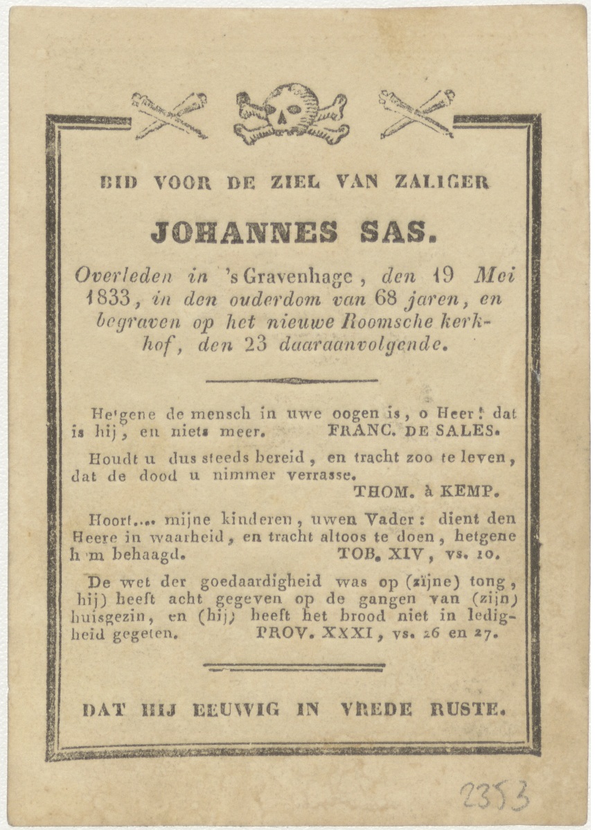 H. Paulus, kz. Bid voor ziel Sas (+1833);Den Haag;