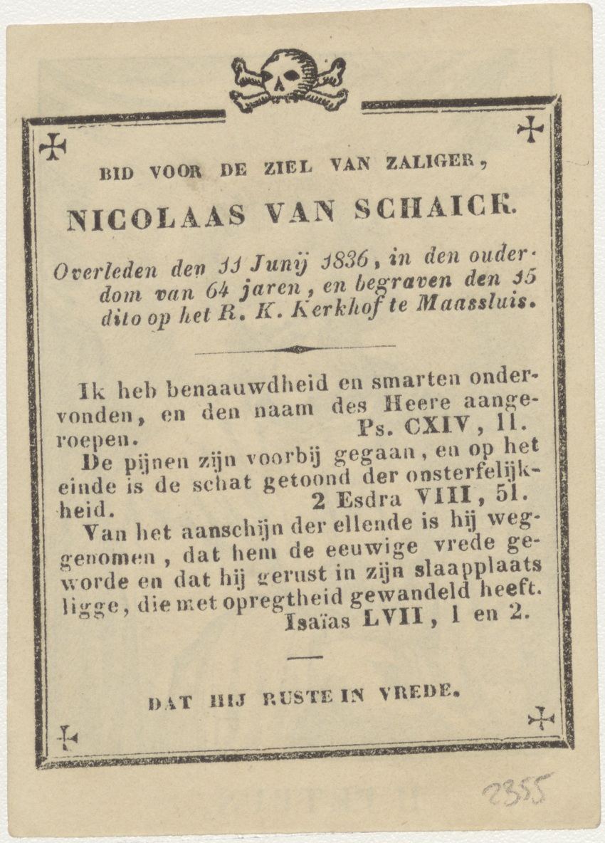 H. Petrus, kz. Bid voor ziel Van Schaick (+1836);Maassluis;