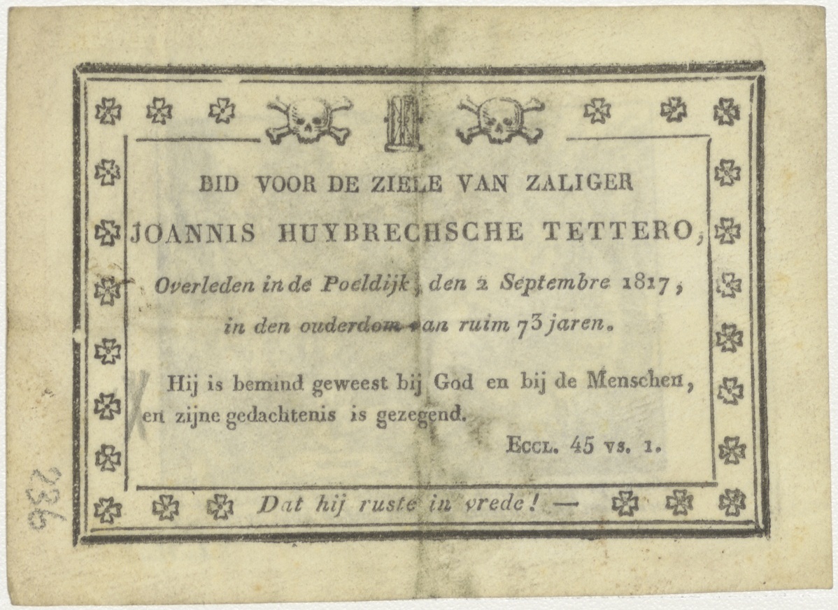 Amor divinus en Anima (cant.2), kz. Bid voor ziel Tettero (+1817);Poeldijk;
