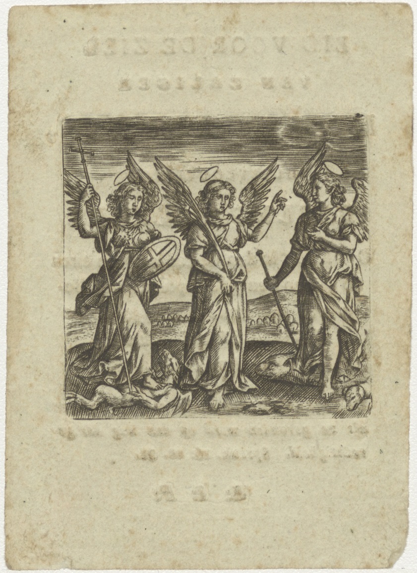 H. Michael, H. Gabriel en derde engel, kz. Bid voor ziel Volkers-Soerman (+1794);Engelsche Kerk Amsterdam;