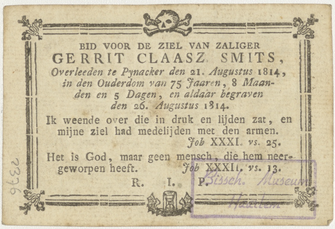 H. Joseph (Jozef), kz. Bid voor ziel Pynacker Claasz.-Smits (+1814)