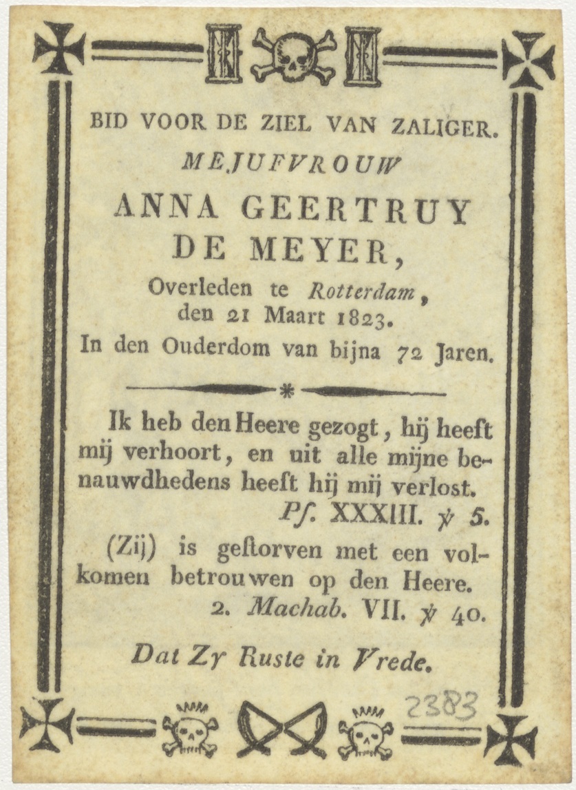 Doop van Christus in de Jordaan, kz. Bid voor ziel De Meyer (+1823);Rotterdam;