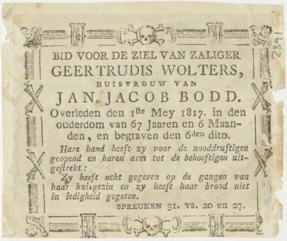 Verlossing der Joden uit Babylon, kz. Bid voor ziel Bodd-Wolters (+1817);