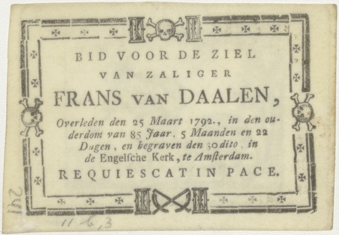 Ona Metam L.10 Hipomenes Atalantam cursu Vincit, kz. Bid voor ziel Van Daalen;(+1792);Engelsche Kerk Amsterdam;