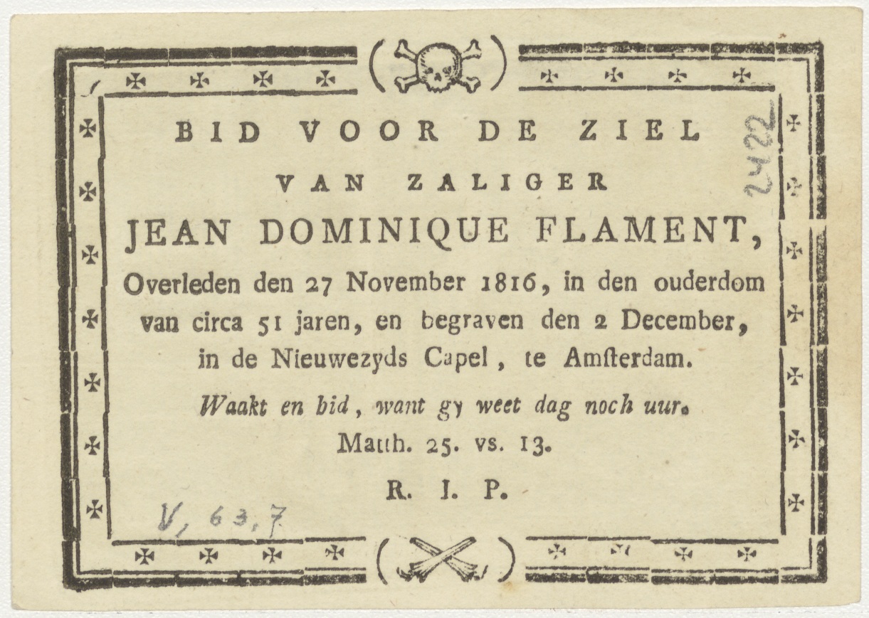 Koning David met de harp, kz. Bid voor ziel Flament (+1816) Amsterdam
