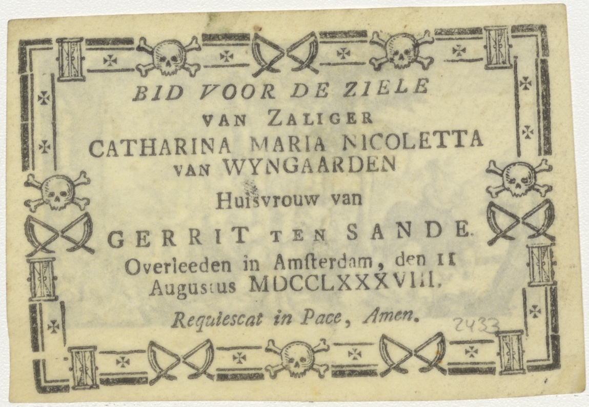 Rust op vlucht naar Egypte, kz. Bid voor ziel Ten Sande-van Wijngaarden (+1788);Amsterdam;