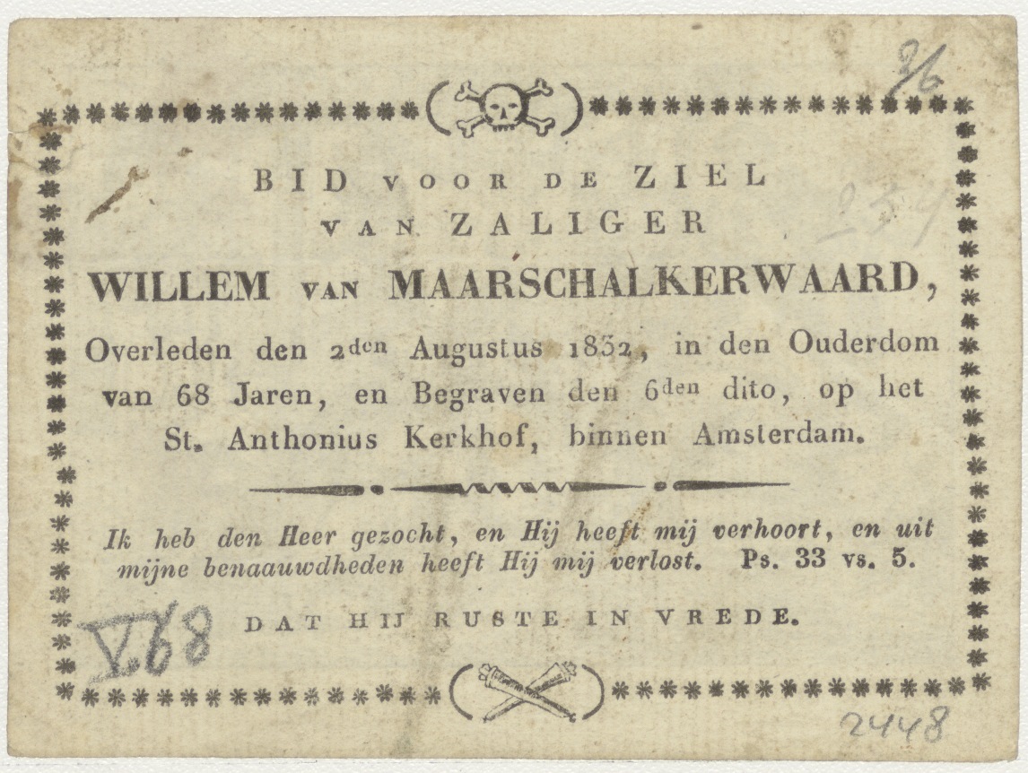 Aanbidding der koningen, kz. Bid voor ziel van Maarschalkerwaard (+1832);Amsterdam;