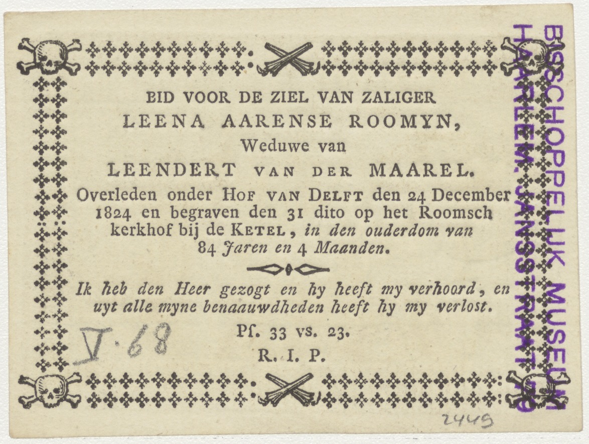 Aanbidding der koningen, kz. Bid voor ziel Van der Maarel-Roomijn (+1824);Hof van Delft;