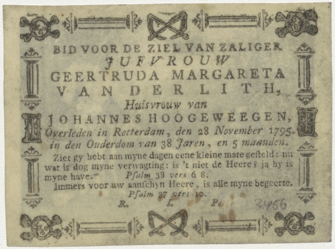 Annunciatie, Maria boodschap, kz. Bid voor ziel Hoogeweegen-Van der Lith (+1795);Rotterdam;