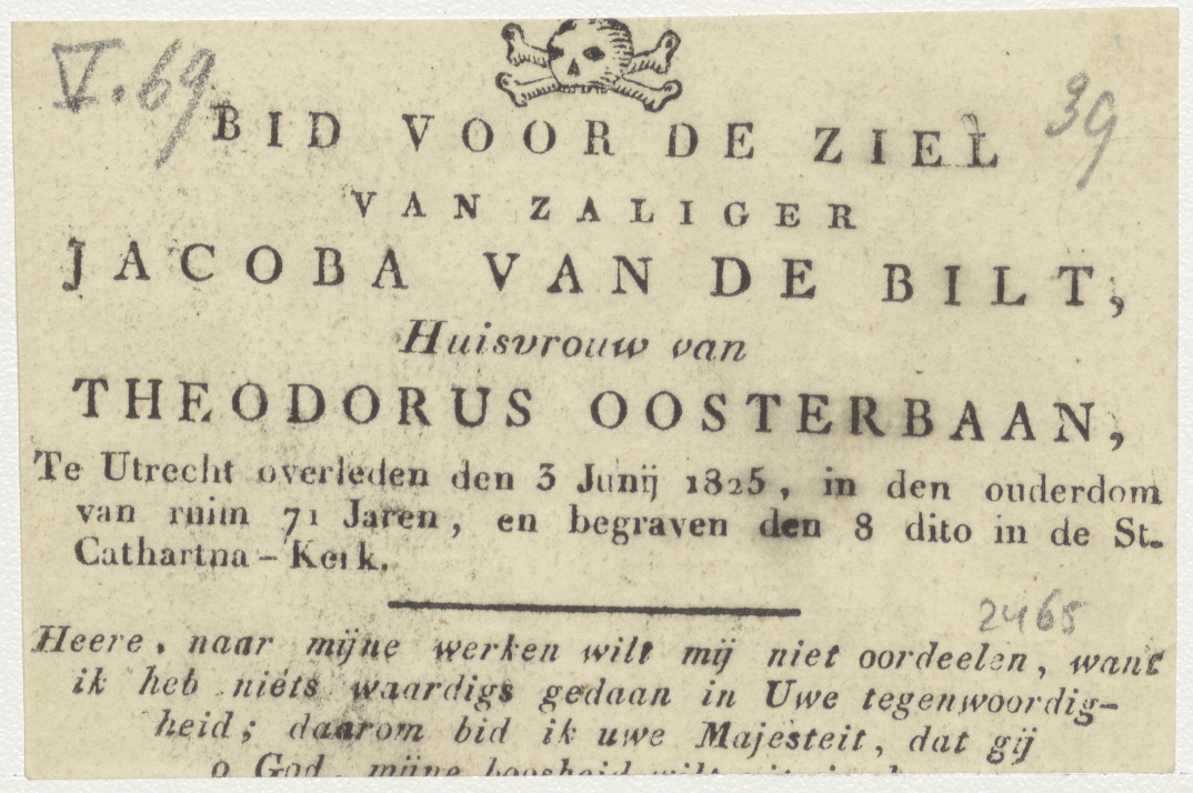 Aanbidding der herders, kz. Bid voor ziel Van de Bilt-Oosterbaan (+1825);Utrecht;