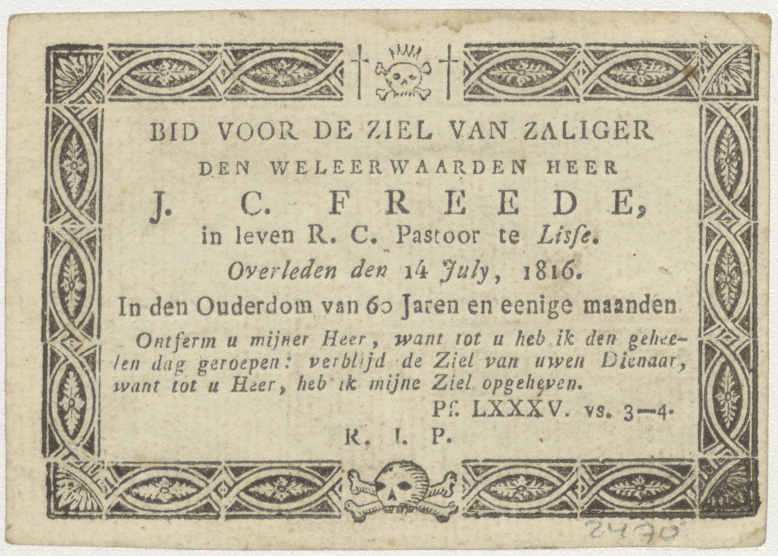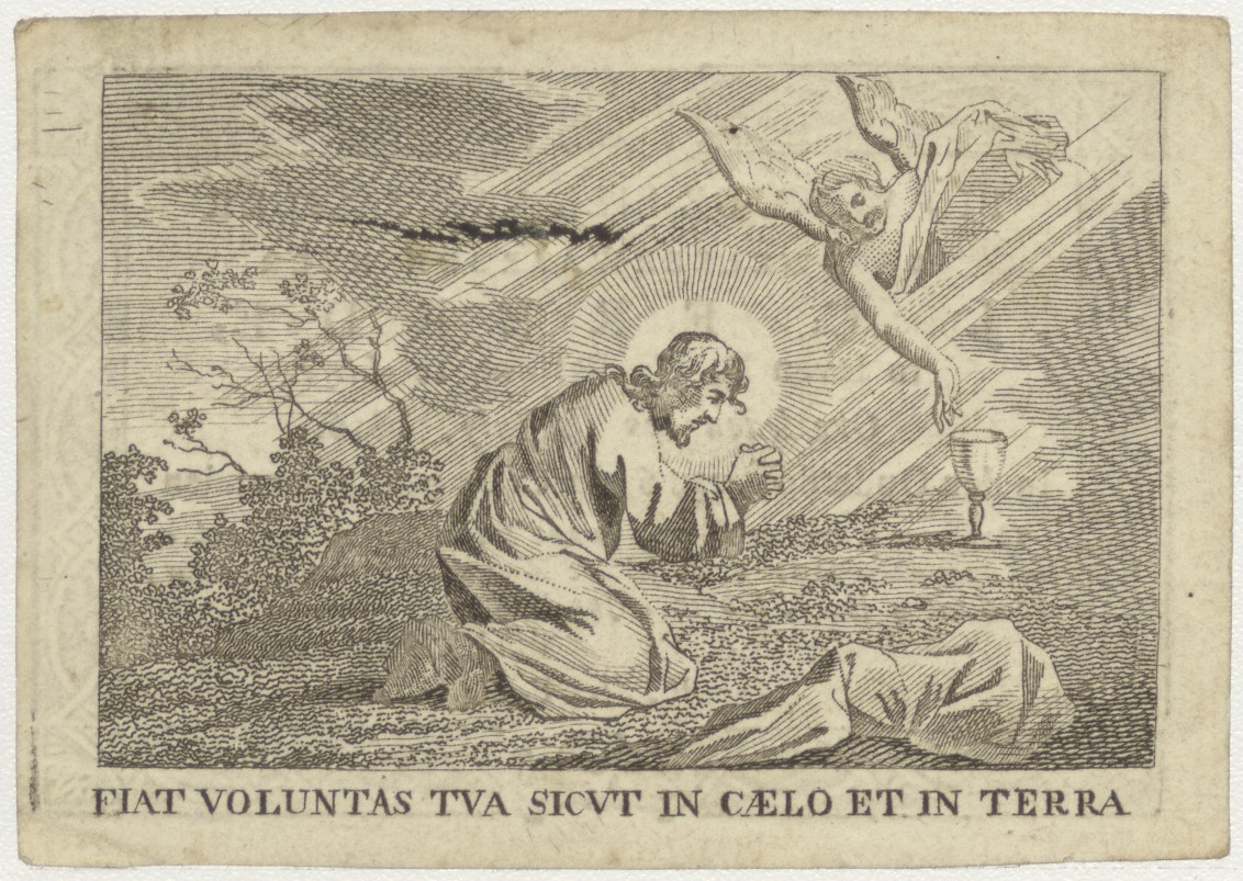Fiat Voluntas tua, Christus in tuin van Getsemané, kz. Religieus;Bid voor ziel J.C. Freede (+1816);pastoor te Lisse;