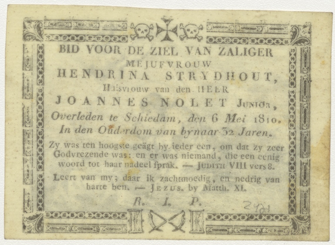 Fiat Voluntas tua, Christus in tuin van Getsemané, kz. Bid voor ziel Nolet jr. Strijdhout (+1810);Schiedam;