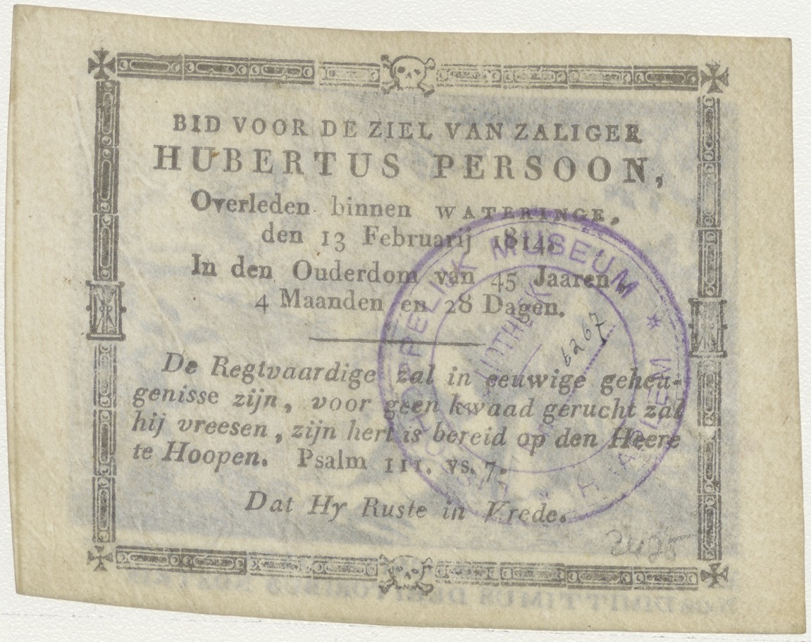 Et dimitte nobis... Lijd ons niet in bekoring, met God de Vader, kz. Bid voor ziel Persoon (+1814);Wateringe;