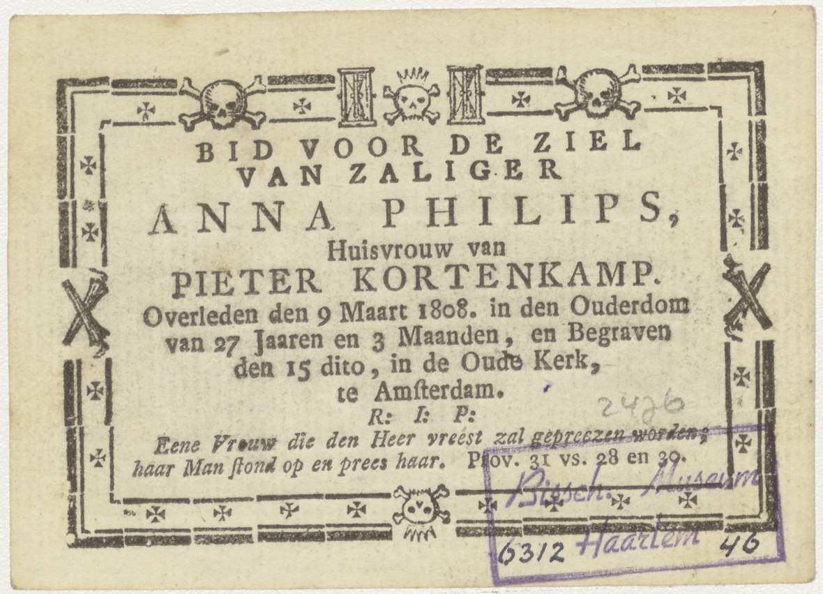 Et dimitte nobis... Lijd ons niet in bekoring, met God de Vader, kz. Bid voor ziel Philips-Kortenkamp (+1808);Oude Kerk;Amsterdam;