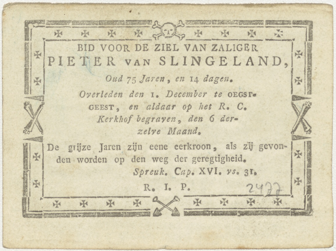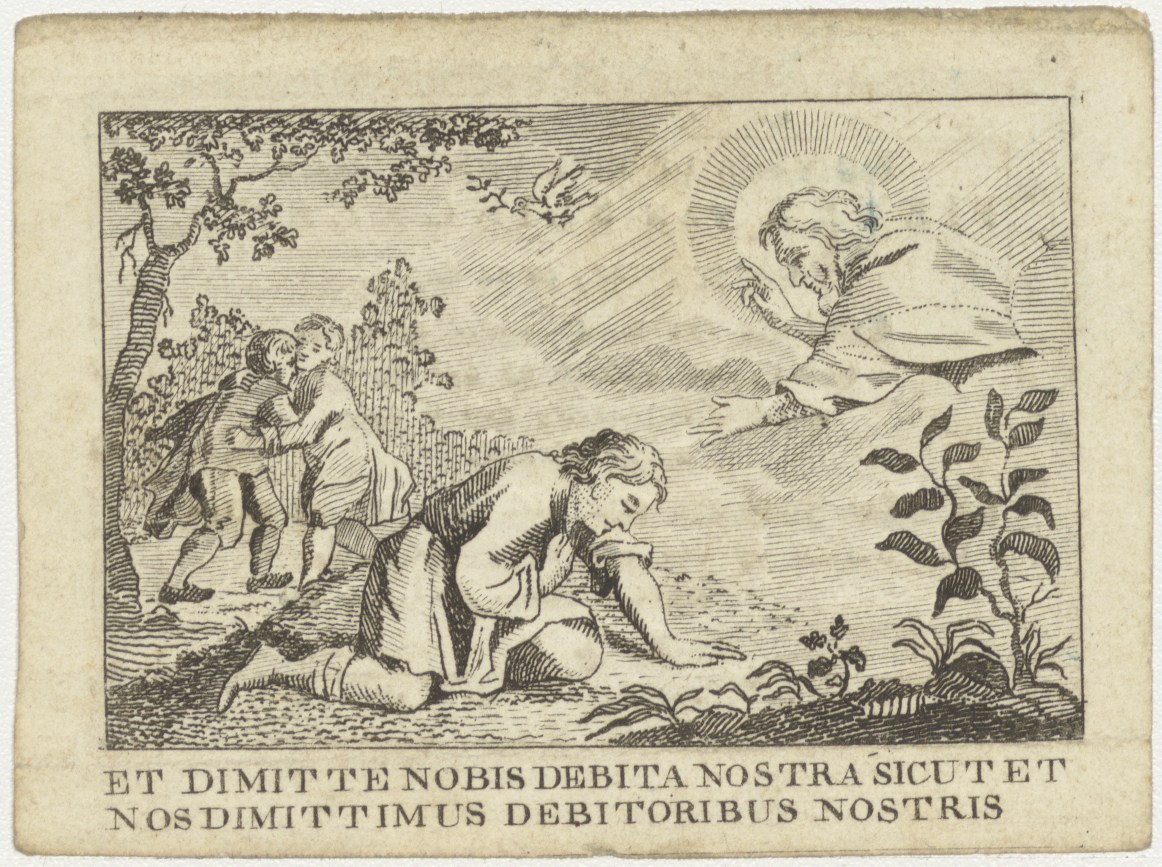 Et dimitte nobis... Lijd ons niet in bekoring, met God de Vader, kz. Bid voor ziel Pieter van Slingeland (+1 december ...), Oegstgeest