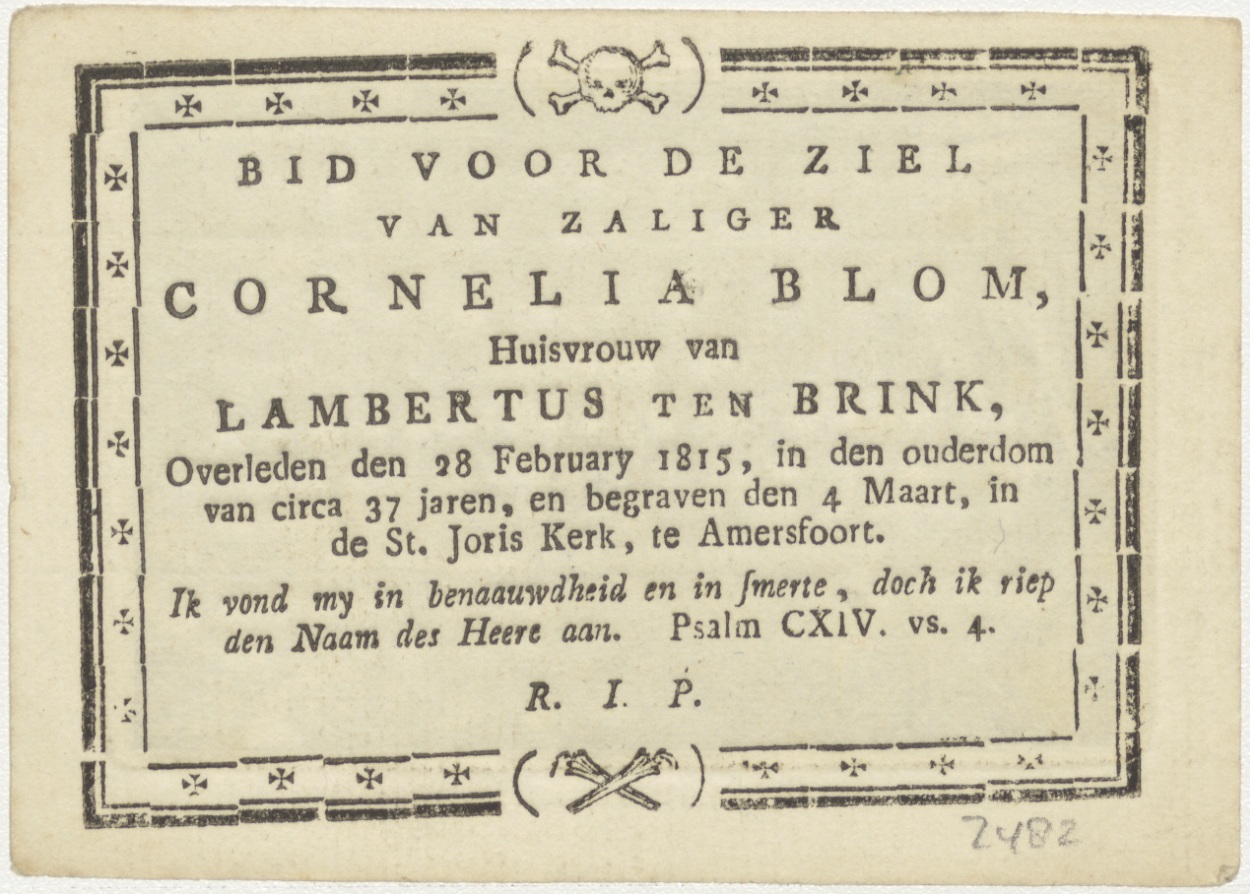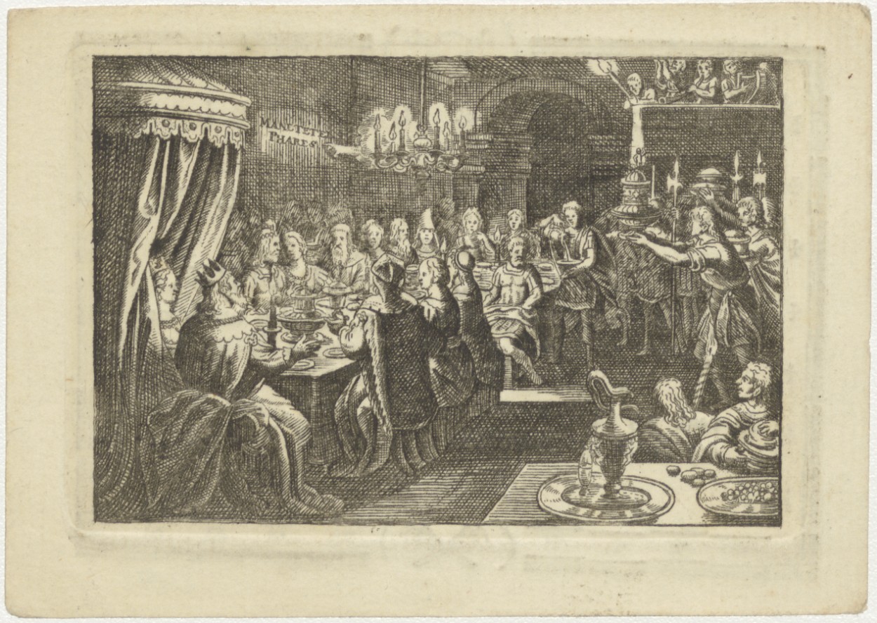 Bruiloftsfeest met hand die tekst op muur schrijft, kz. Bid voor ziel Ten Brink-Blom (+1815);St. Joriskerk;Amersfoort;