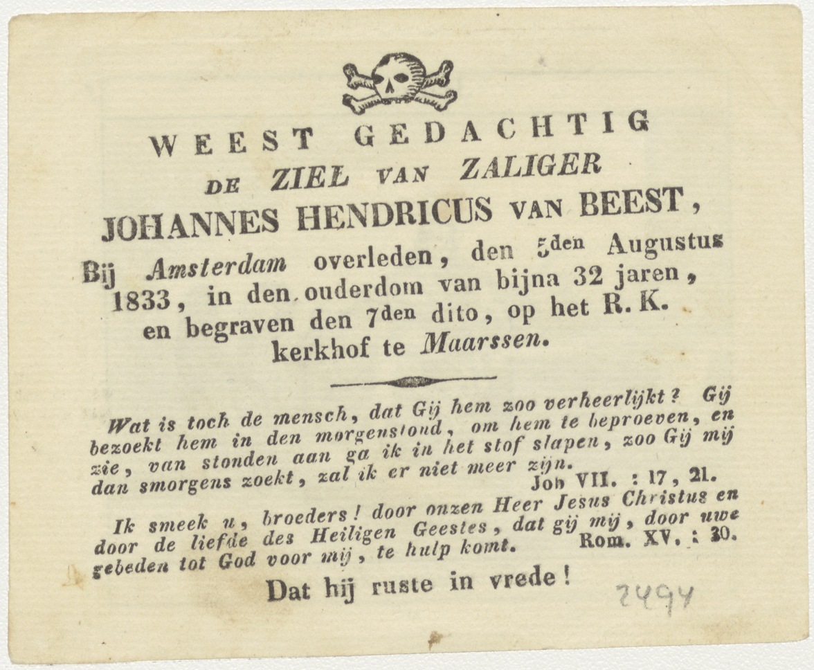 Joannes (Johannes) de evangelist, kz. Bid voor ziel VAn Beest (+1833);Maarssen;