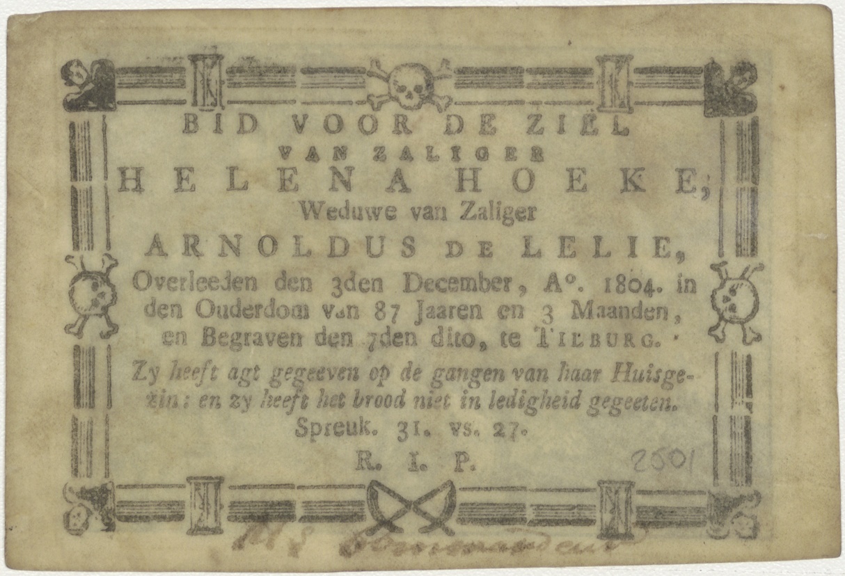 Terugkeer van de verloren zoon, kz. Bid voor ziel De Lelie-Hoeke (+1804);Tilburg;