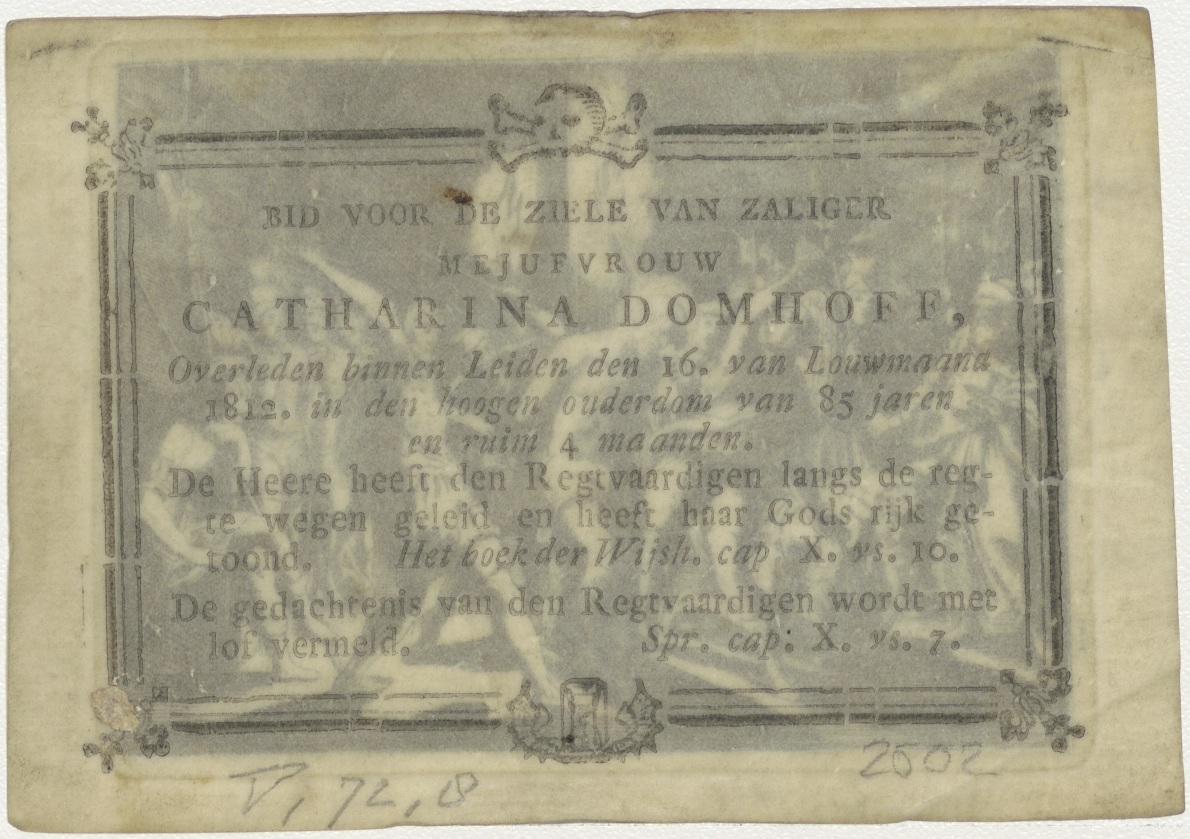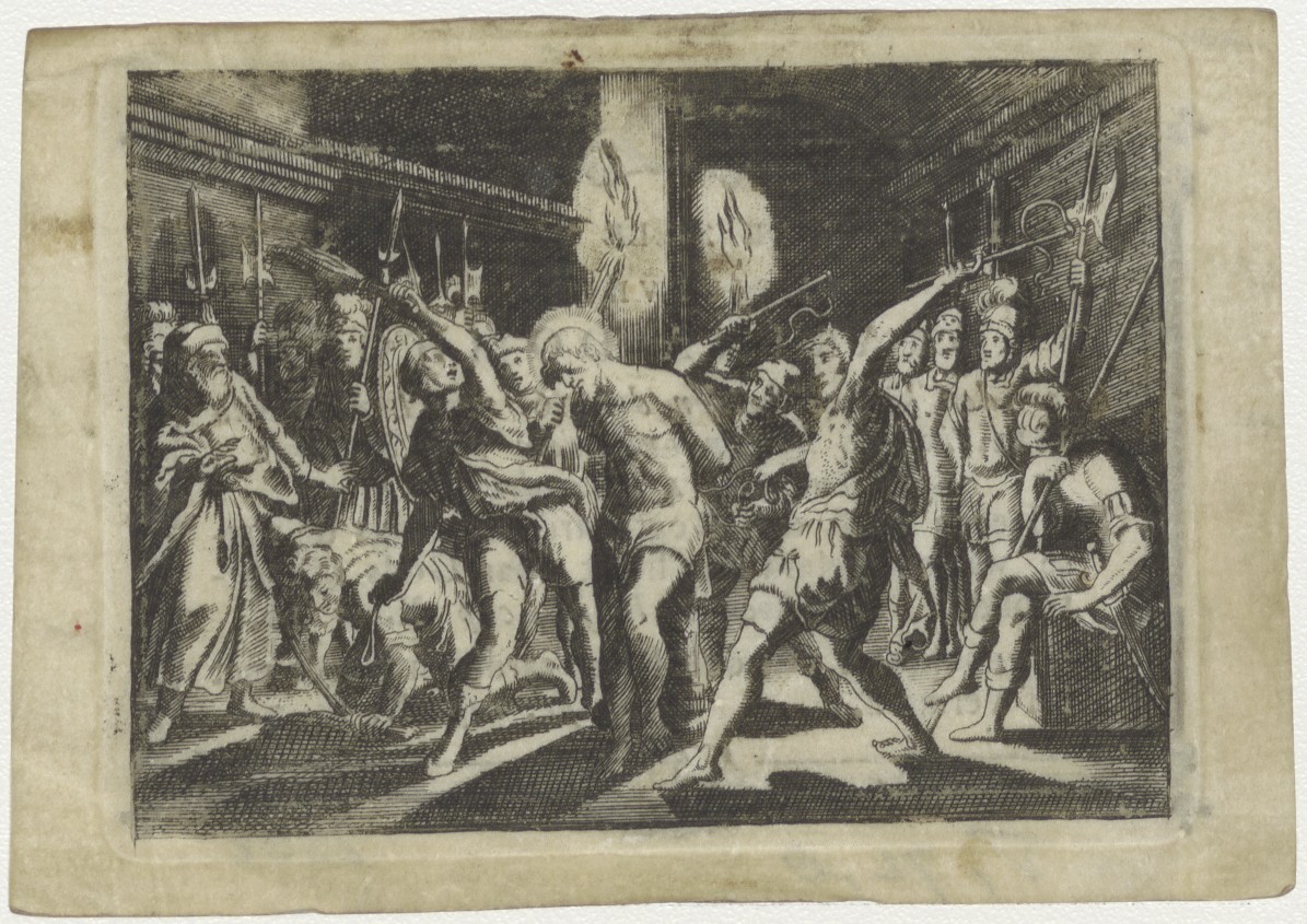 Passiescène: Marteling van Christus, kz. Bid voor ziel Domhoff (+1812);Leiden;