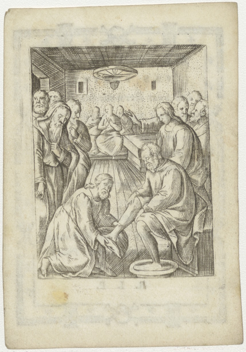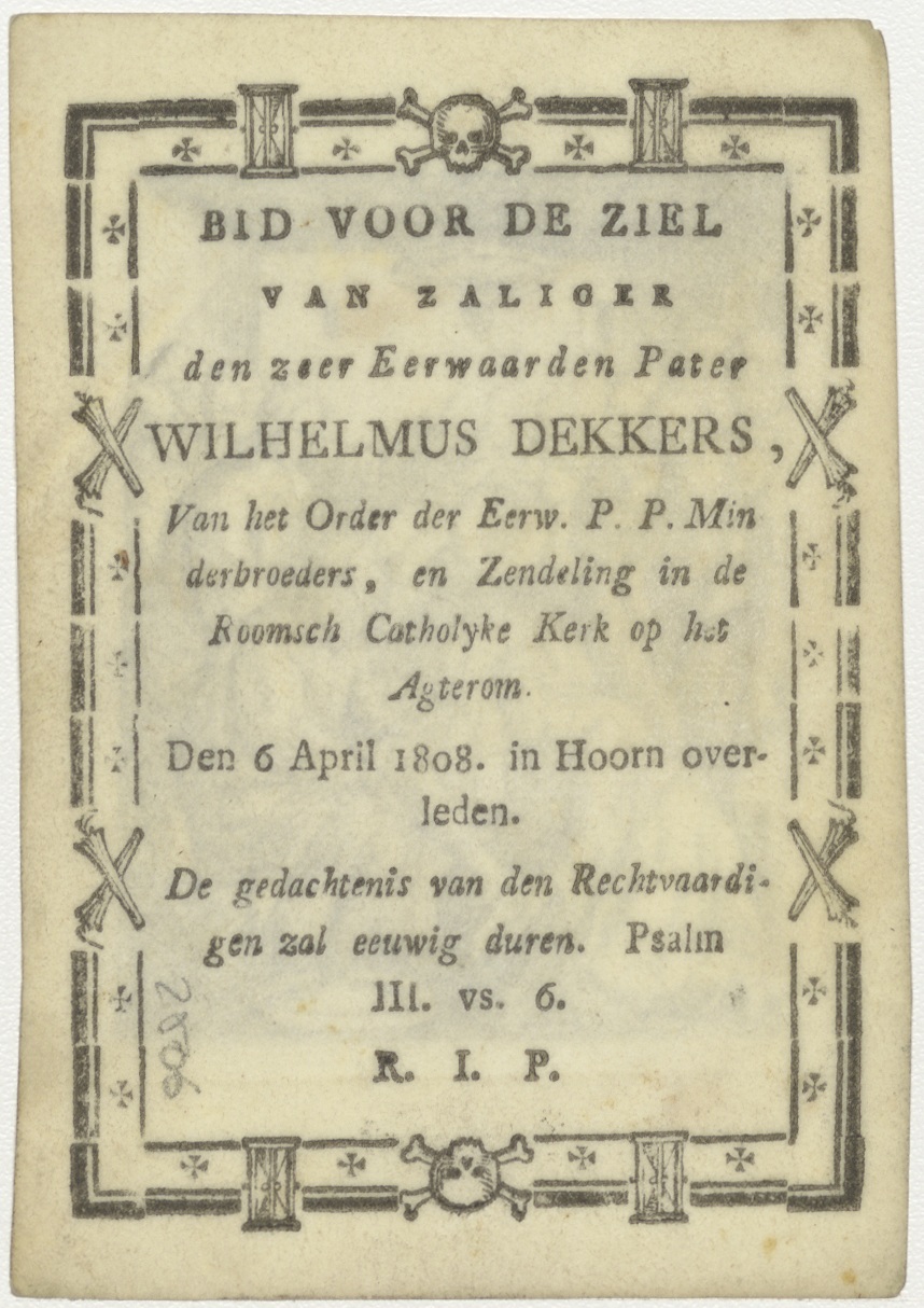 Christus wast de voeten van zijn apostelen, kz. Religieus;Bid voor ziel Wilhelmus Dekkers (+1808);pastoor Agterom;Hoorn;