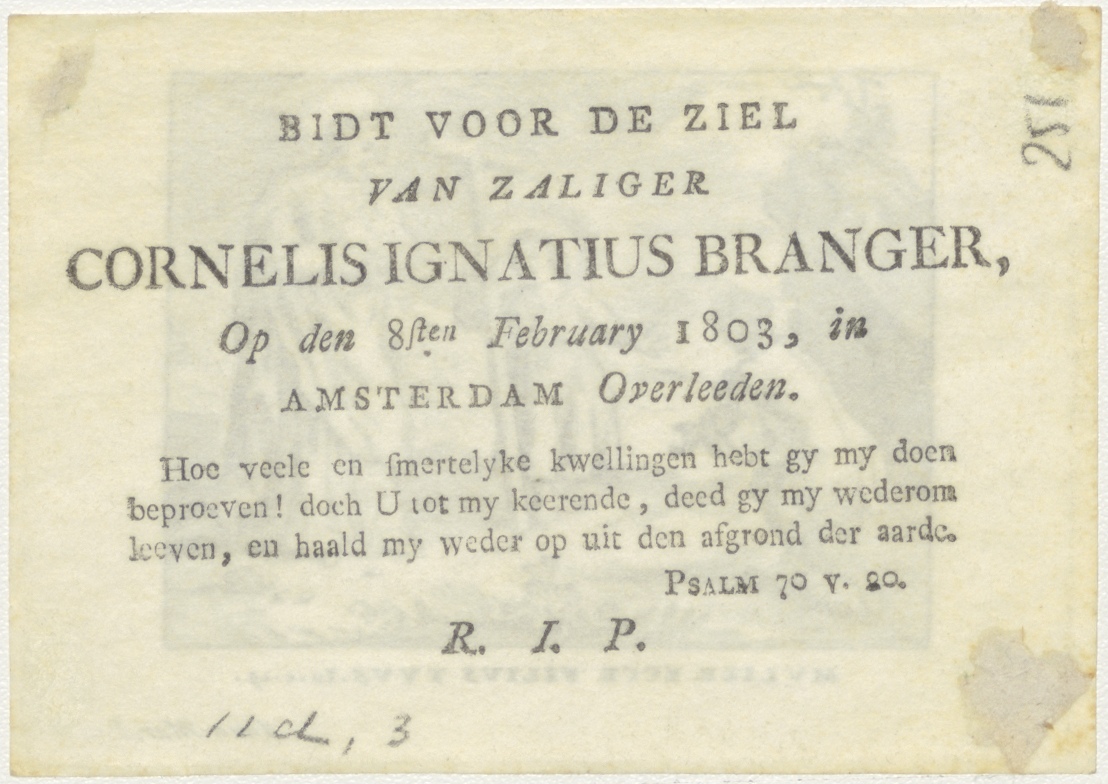 Christuskind met Maria(?), kz. Bid voor ziel Branger (+1803);Amsterdam;