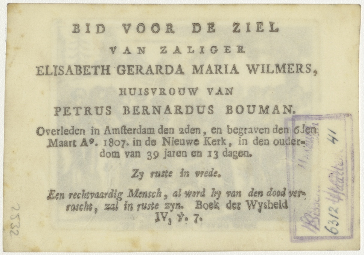Wonder van Christus, Jezus drijft den duivel uit, kz. Bid voor ziel Bouman-Wilmers (+1807);Nieuwe Kerk;Amsterdam;