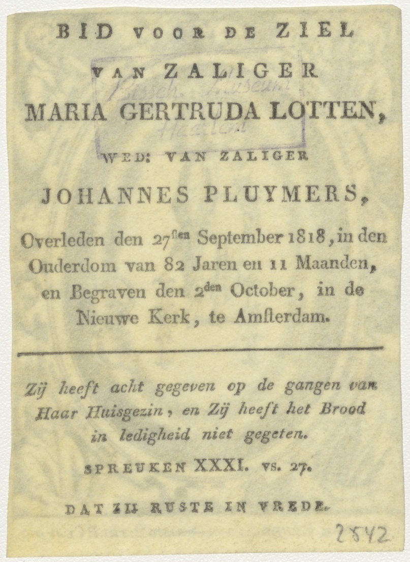 Christuskind met pater P. Claudio, kz. Bid voor ziel Pluymers-Lotten (+1818);Nieuwe Kerk;Amsterdam;