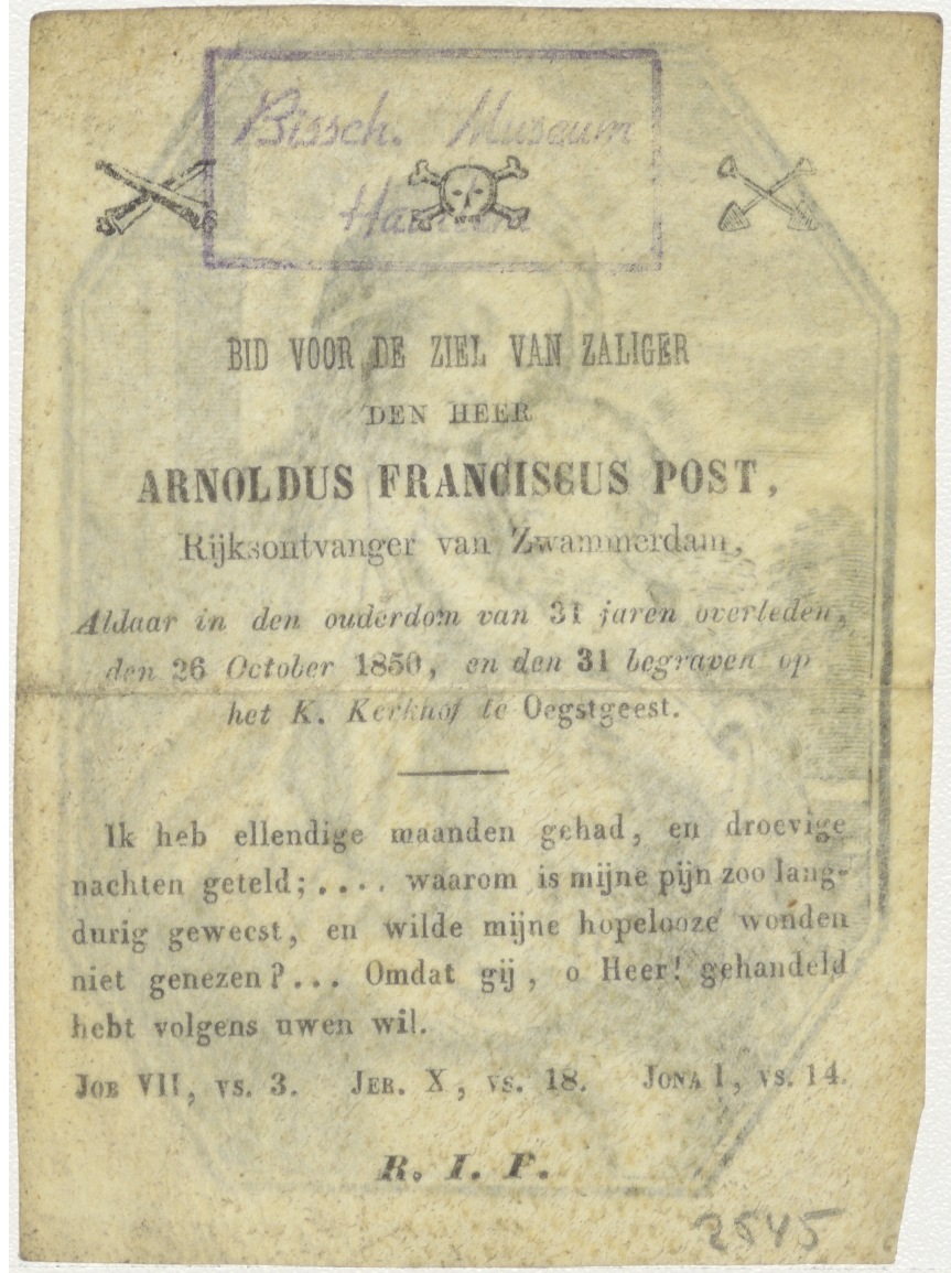 Maria met Christuskind, kz. Bid voor ziel Post (+1850);Zwammerdam;Oegstgeest;
