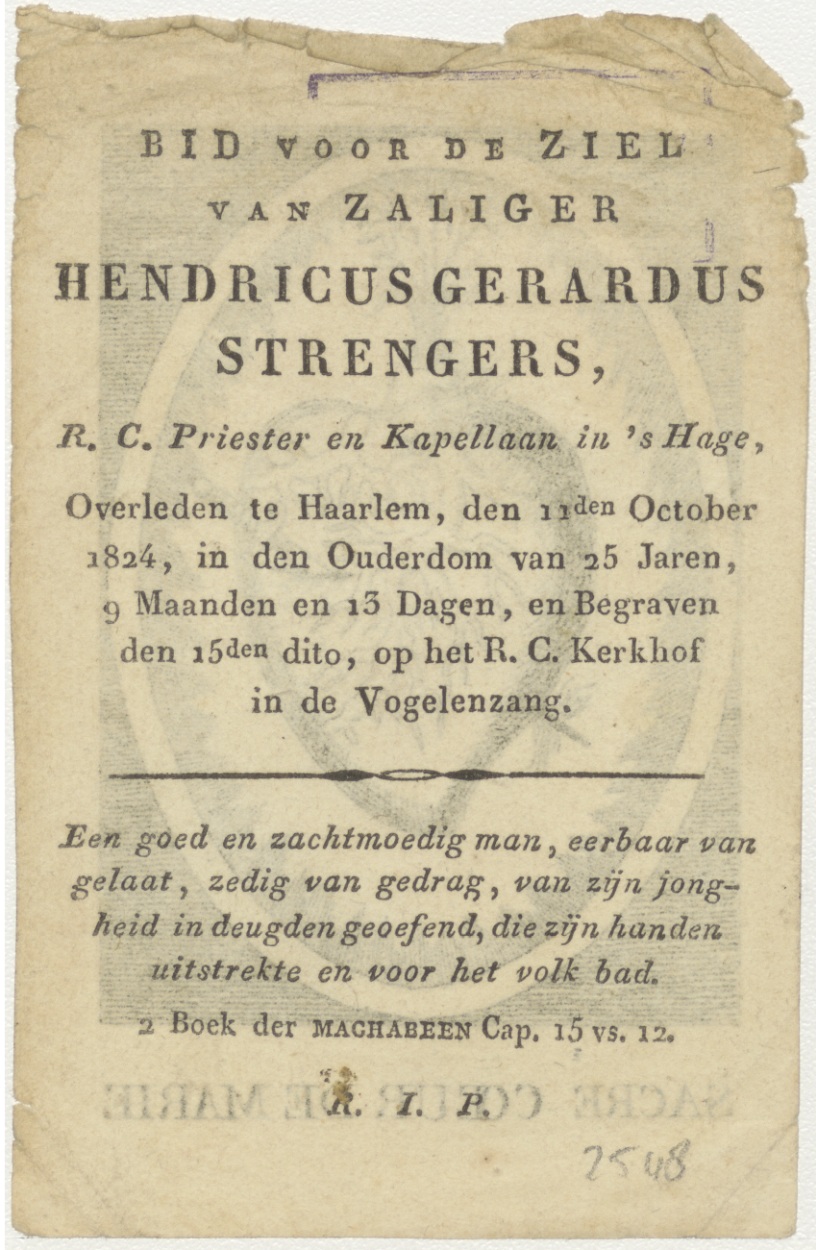 H. Hart van Maria (Frans), kz. Bid voor ziel Strengers (+1824);pastoor te Den Haag;