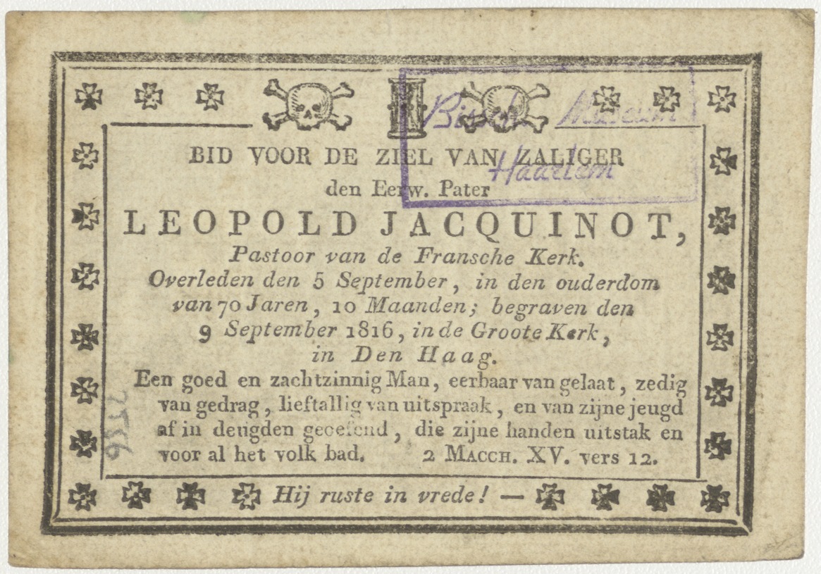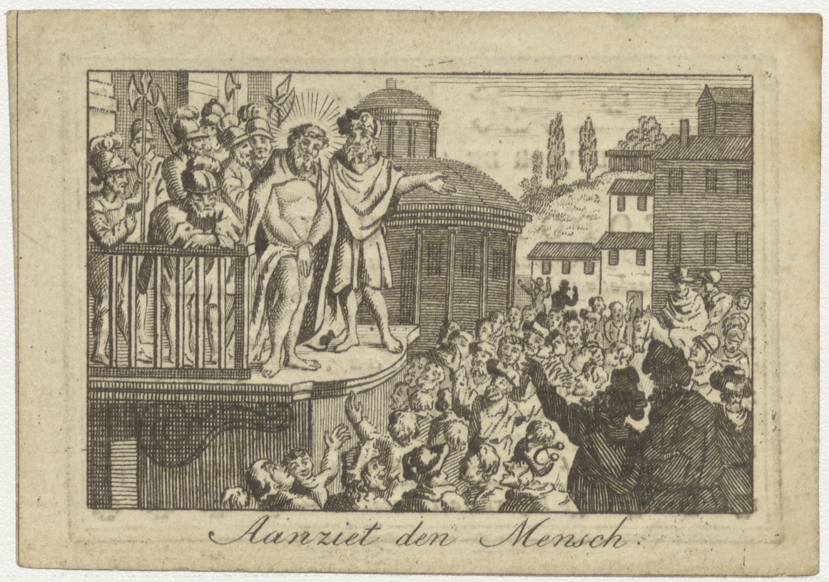 Passiescène: Christus aanziet den mensch: Ecce Homo, kz. Religieus;Bid voor ziel Leopold Jacquinot (+1816);pastoor Franse Kerk;Den Haag;