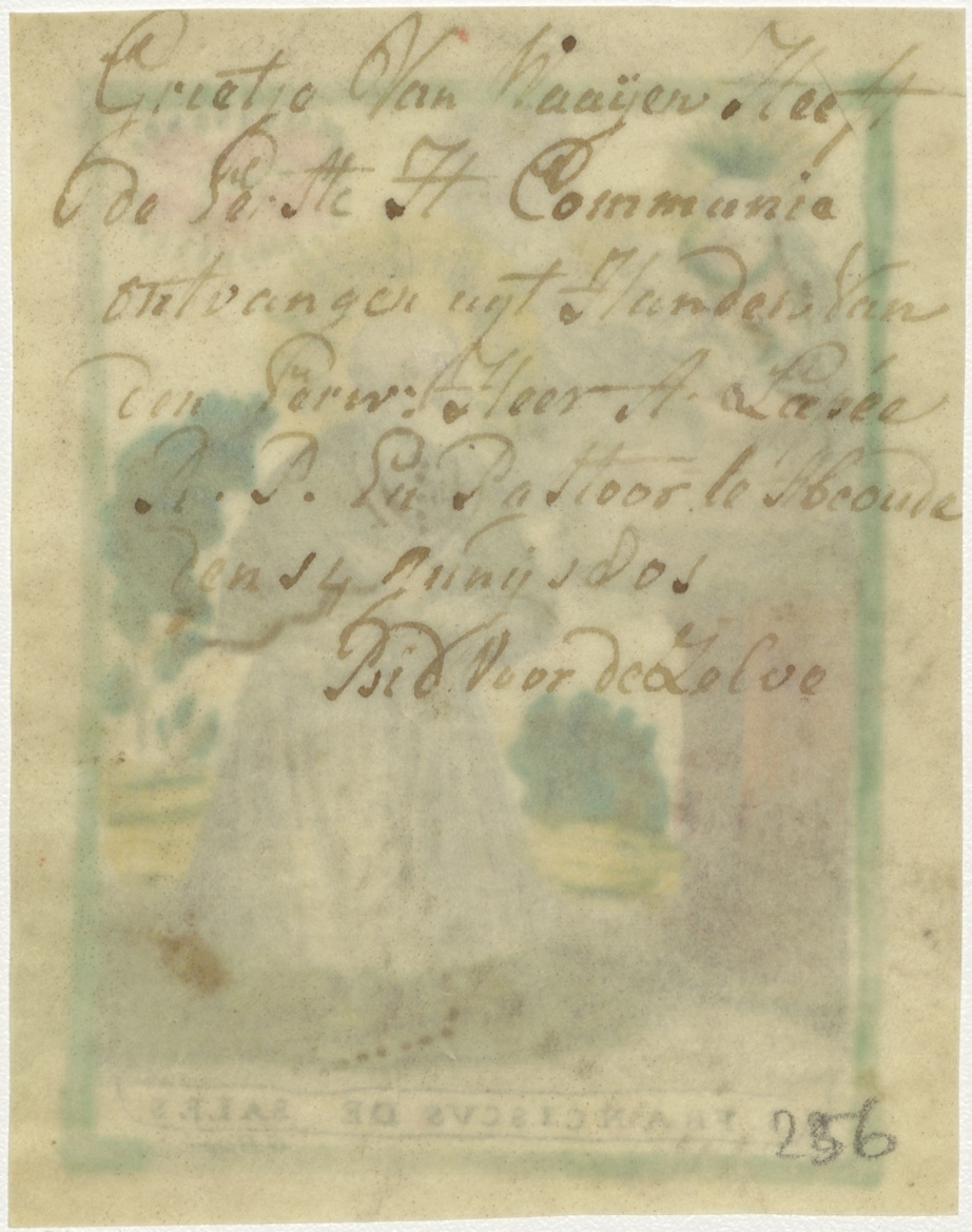 H. Franciscus de Sales, ingekleurd, kz. H. Communie Van Waayen;1801;van pastoor Lapeé Abcoude;
