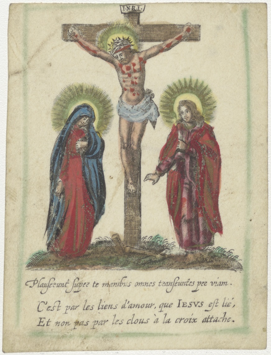 Christus aan het kruis met Maria en Johannes, ingekleurd