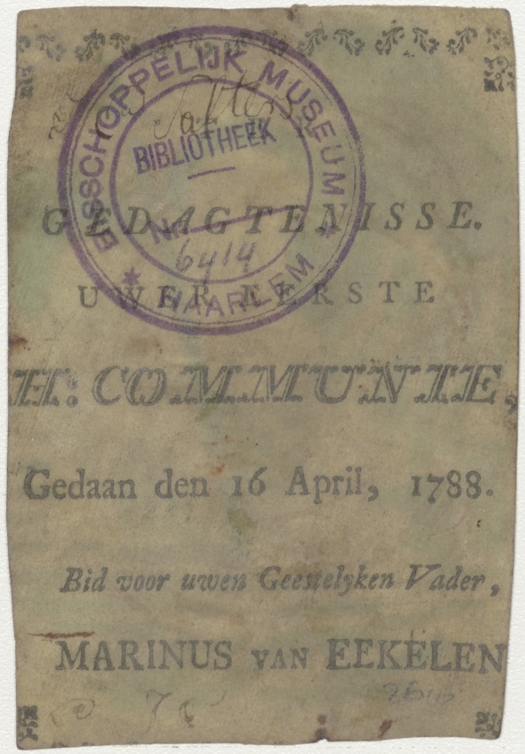 H. Joannes Baptista (Johannes de Doper), ingekleurd, kz. H. Communie;1788;door pastoor Marinus van Eekelen;