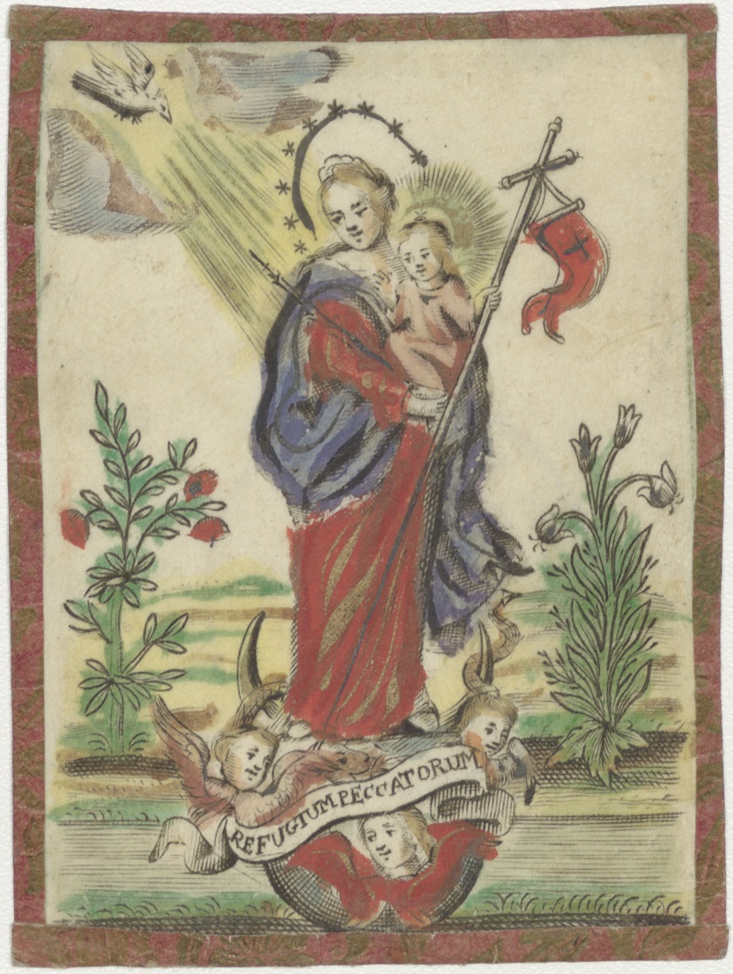 Maria refligtum peccatorum, met Christuskind, ingekleurd