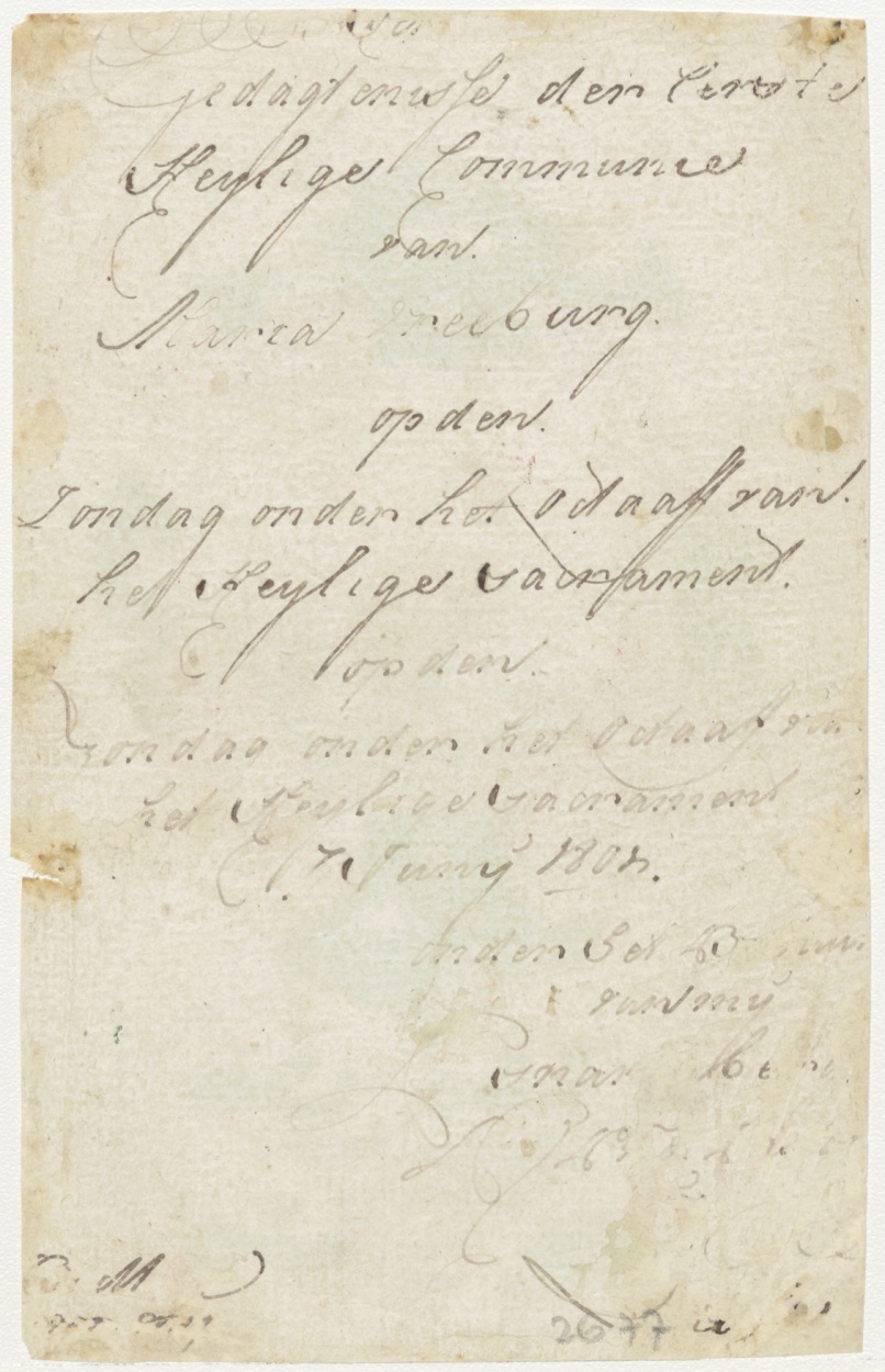 H. Familie, ingekleurd, kz. H. Communie;Vreeburg;1807(?);
