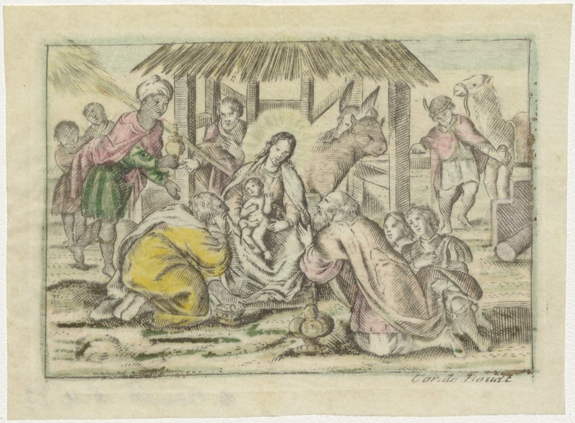 Aanbidding der herders, aanbidding der koningen, ingekleurd
