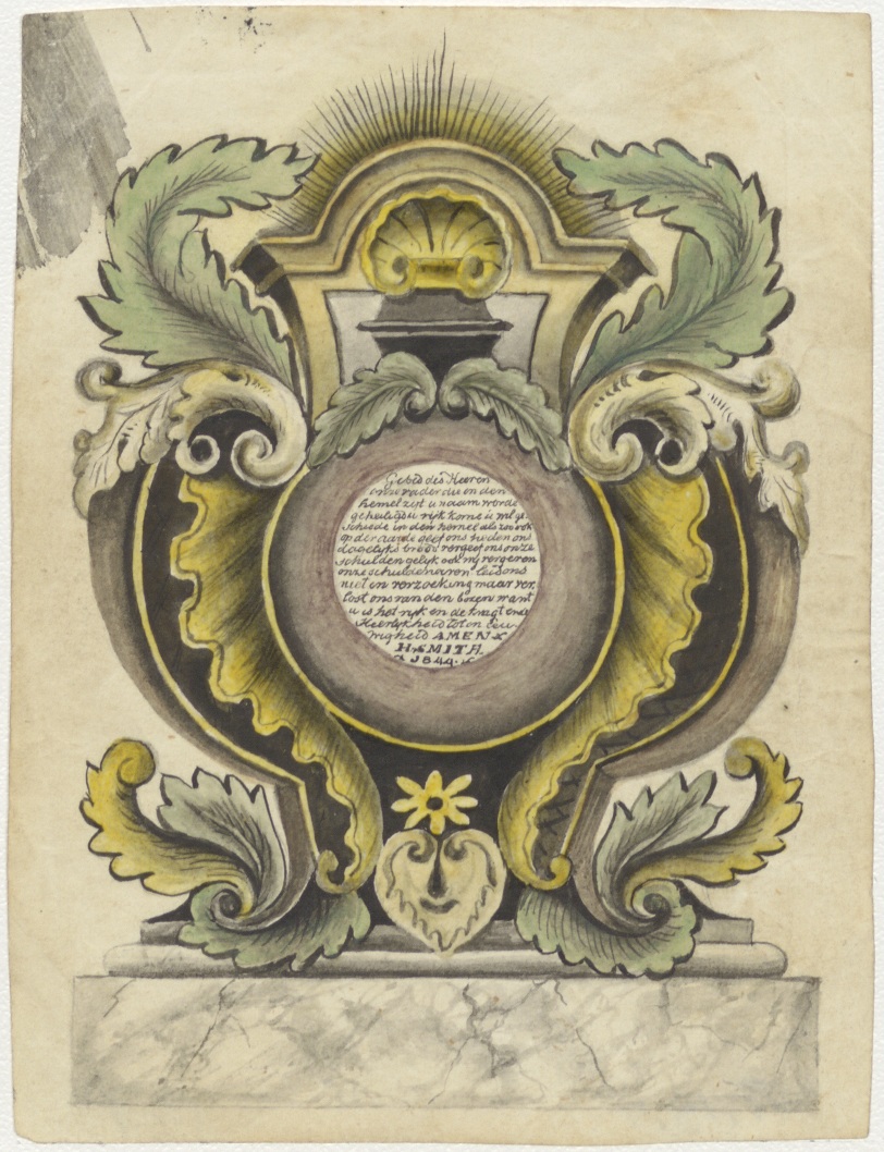 Ornament met gebed des Heeren, ingekleurd