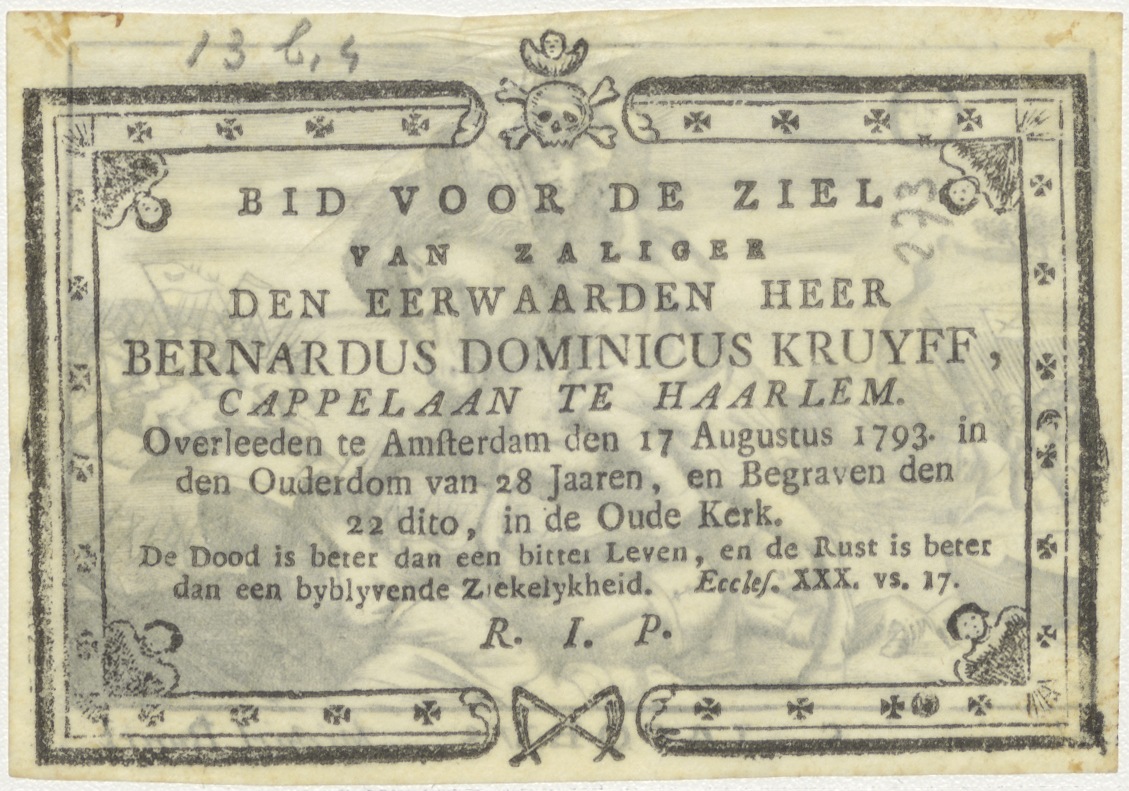 H. Jacobus, kz. Religieus;Bid voor ziel Bernardus Kruyff (+1793);kapelaan;