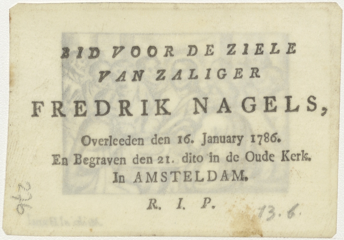 Christus, het laatste avondmaal, kz. Bid voor ziel Nagels (+1786) in Oude Kerk Amsterdam