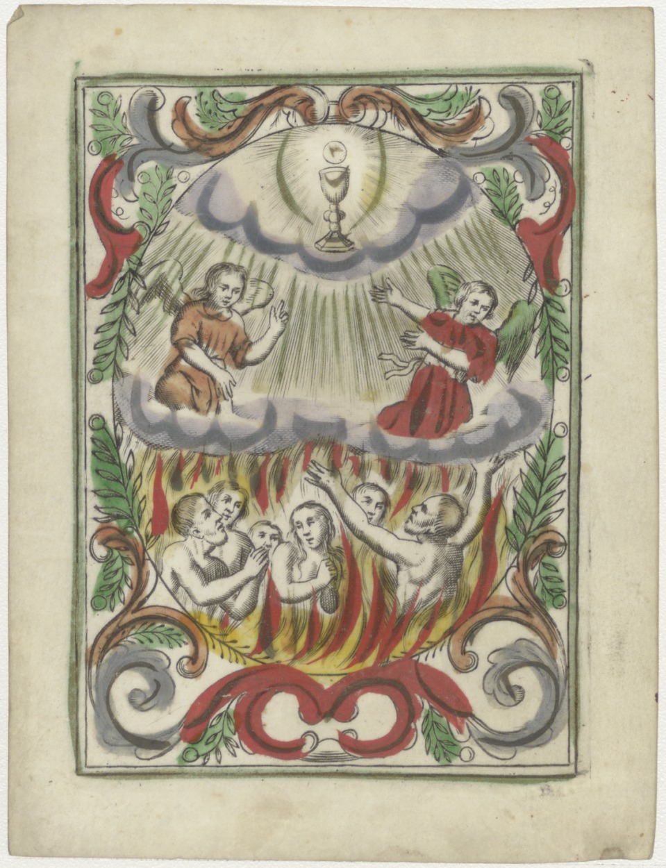 Vagevuur, aanbidding H. Hostie in monstrans, ingekleurd